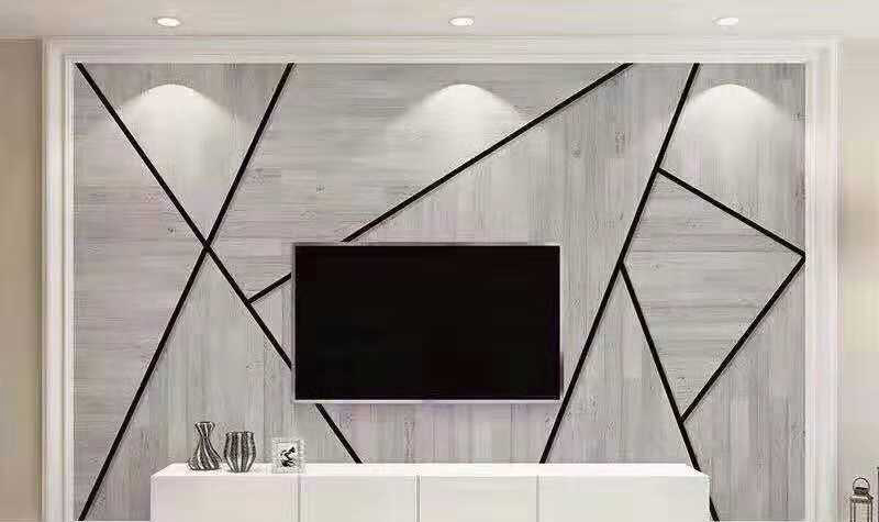 米色人字拼上鑲黑色不銹鋼,做電視背景墻很Fashion!