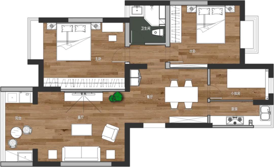 將使用面積70-80平米兩房變三房