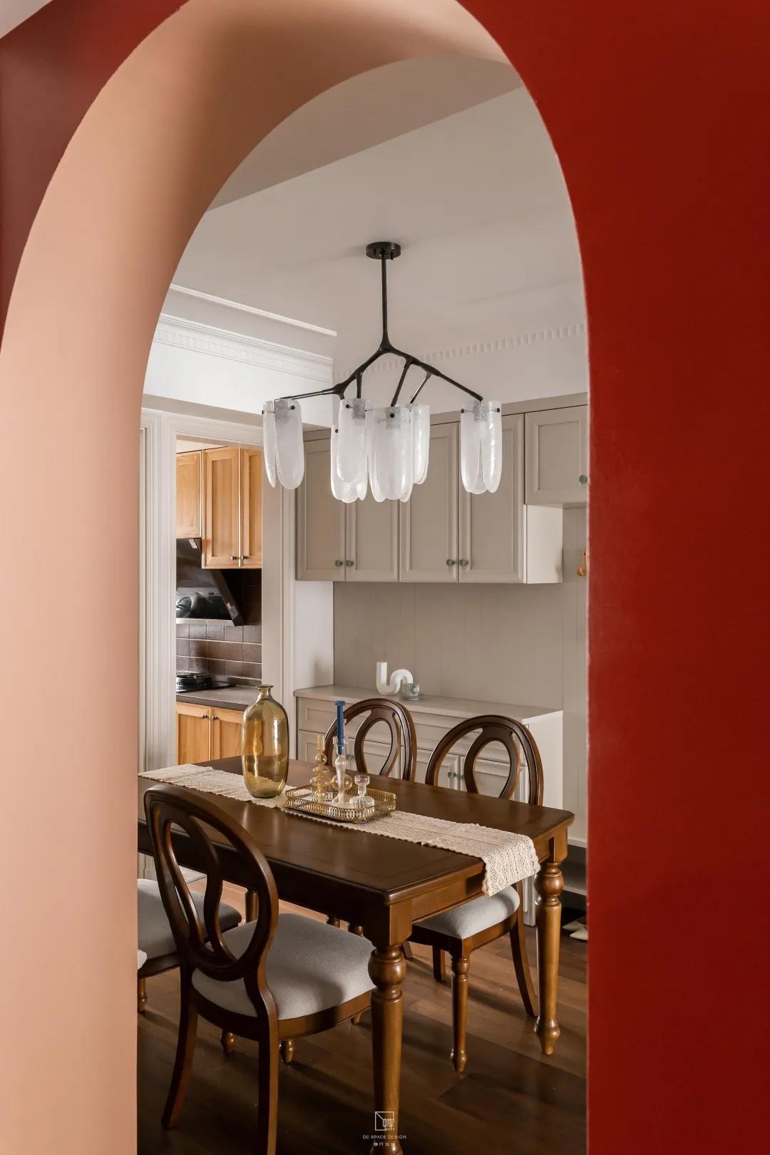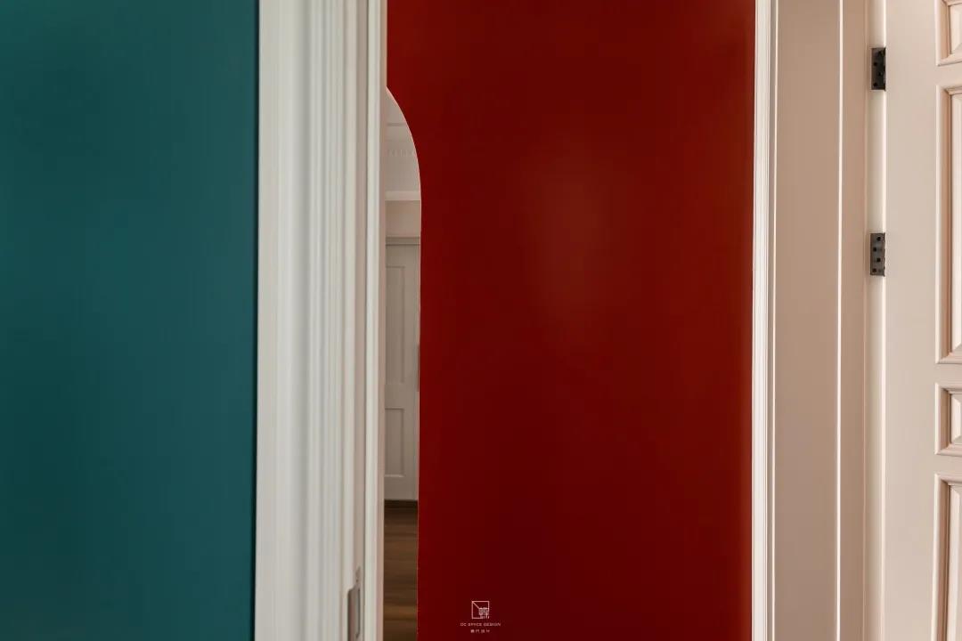 這個家的亮點很多,進門就可以看見別具心裁的拱形門,采用鮮亮的紅色和明亮的綠色進行色彩的搭配,別具一格。顏色的分色體現出立體感讓房屋更加有層次,同時顯得整個房屋更加充滿活力。進入家門的右側就是換鞋區,墻面上的掛鉤讓你在冬天進入家門時可以脫掉厚重外套的束縛。多功能的鞋柜一凳兩用,既可以放置當季的鞋子,又能當舒適的坐凳。