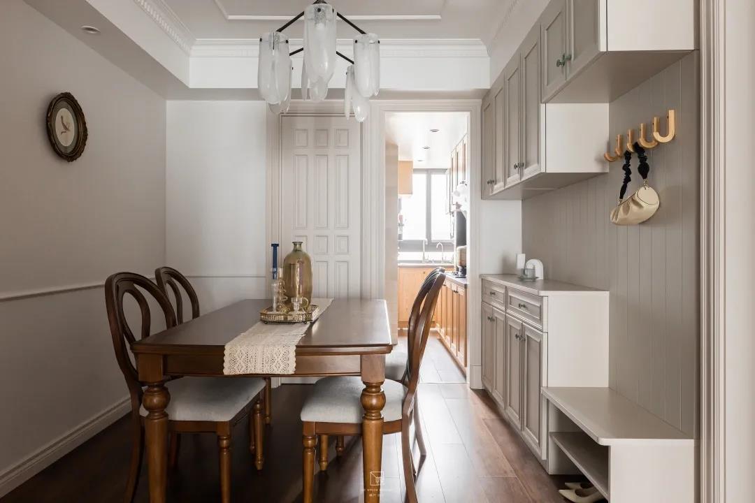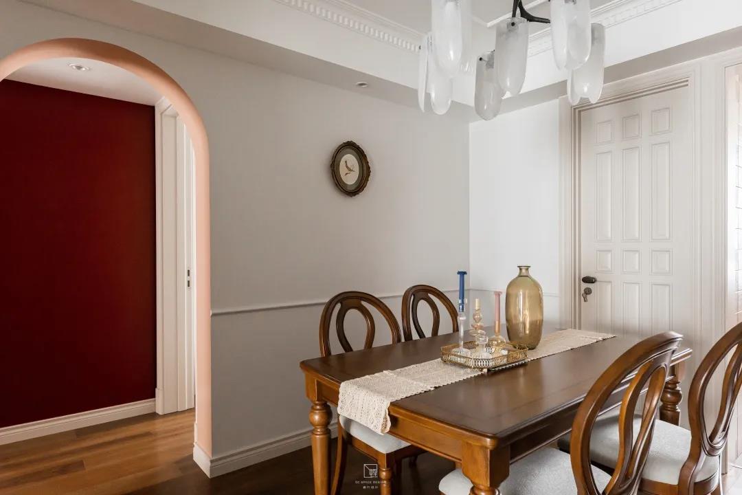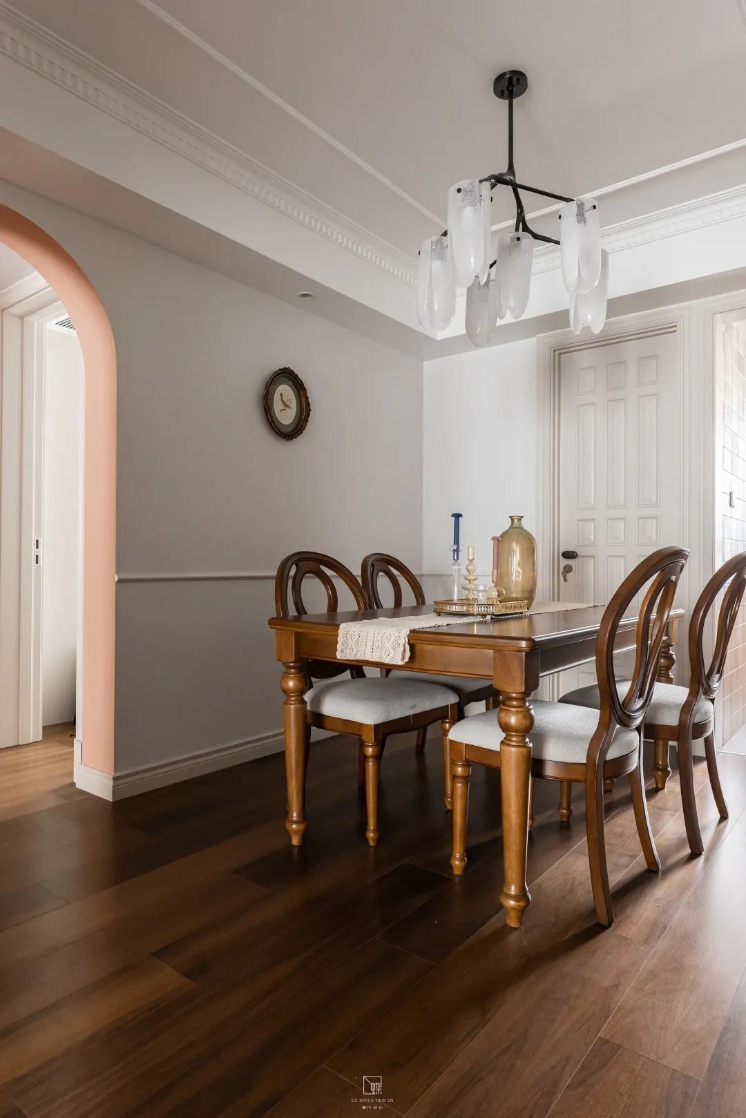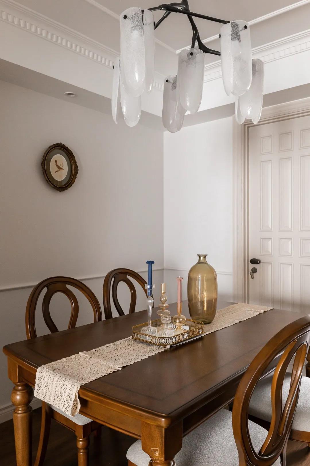 復古的餐桌餐椅和墻面上的掛畫帶來藝術典雅的美感享受。