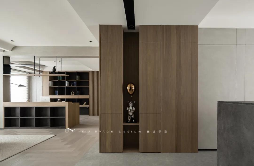 我們在空間設(shè)計(jì)中,做出了較大的調(diào)整,打破了原有客廳的格局,人流動線的錯(cuò)位調(diào)整,增加了一個(gè)獨(dú)立的儲物間,材質(zhì)上我們采用了溫潤的木飾面去處理,讓空間更有溫度。