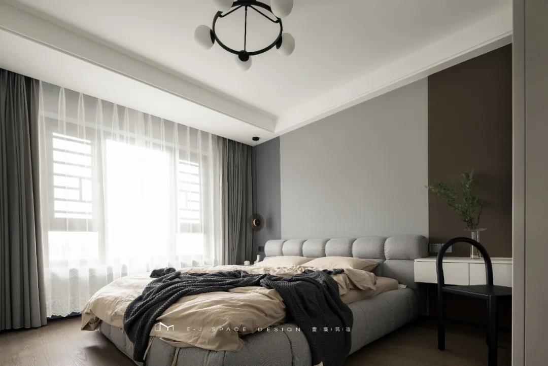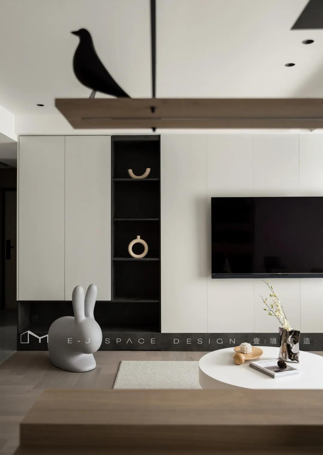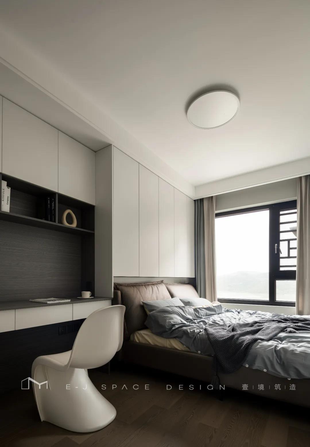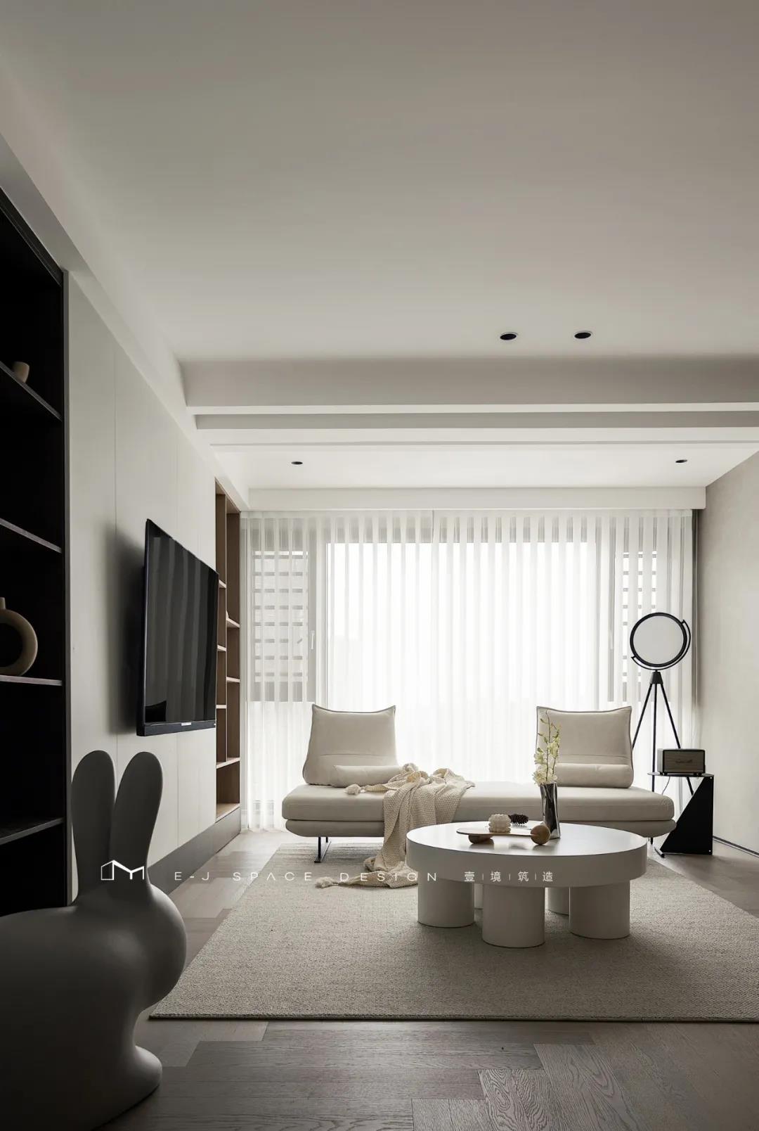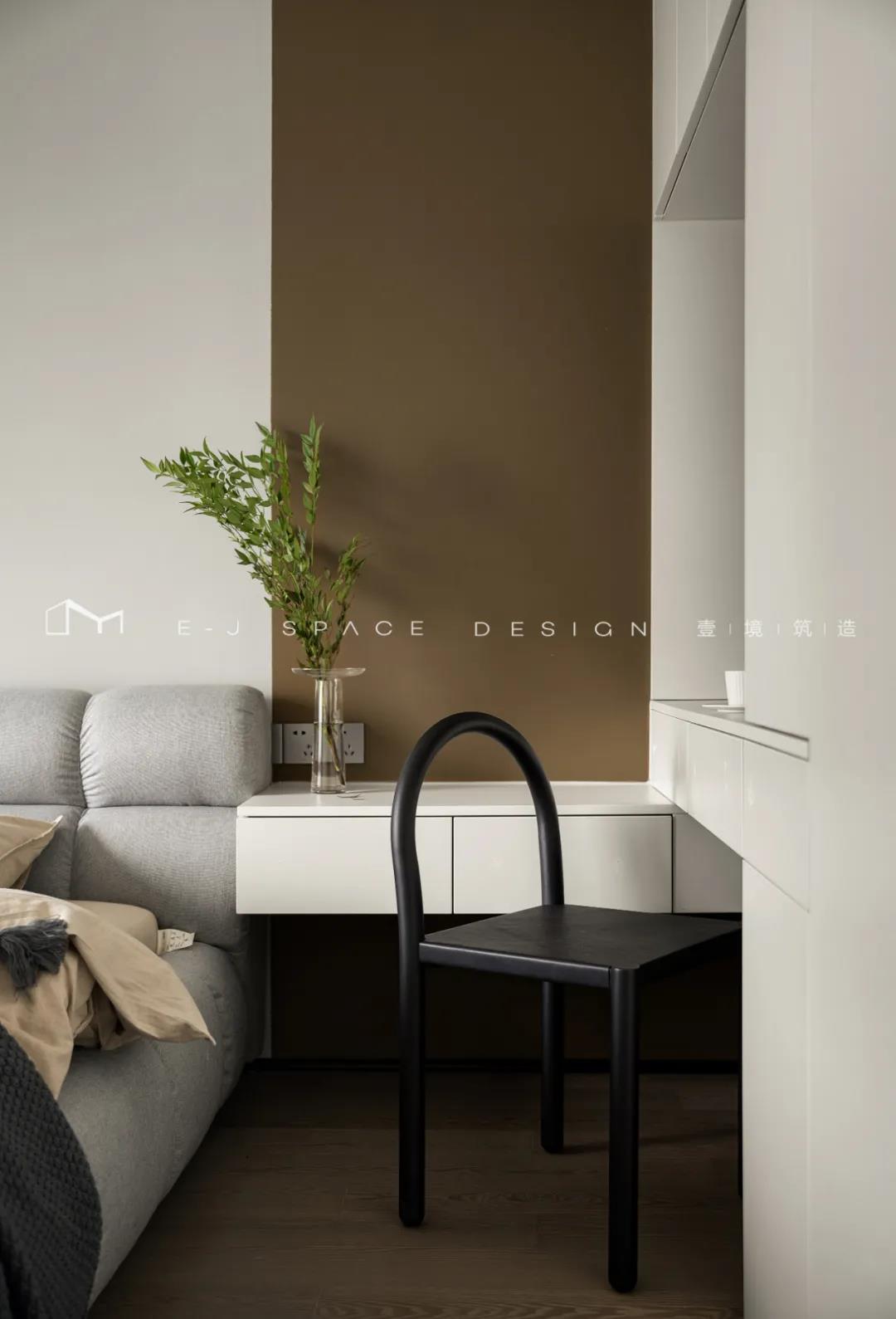 客廳取消了傳統(tǒng)的家具擺放,客廳與書房形成新的空間關(guān)系,以書桌做隔斷作用,讓整體空間通透起來,延伸了空間感。