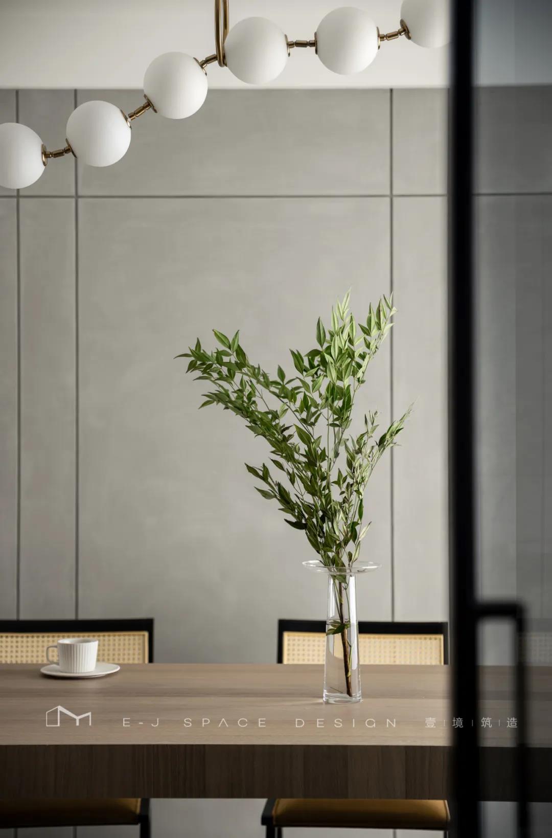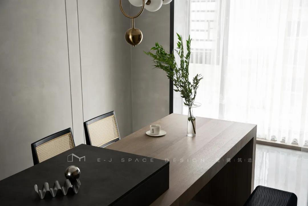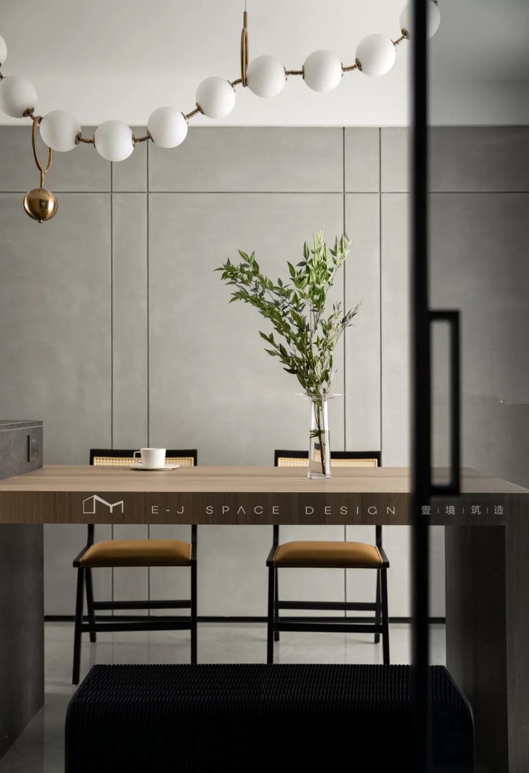 廚房出來便是餐廳空間,首先是儀式感滿滿的裝飾吊燈,讓就餐這件事不再只是潦草的吃飯,而是一天疲憊后,家人相聚在一起,愉快的相處,開心的交談,分享美食,分享快樂的地方!