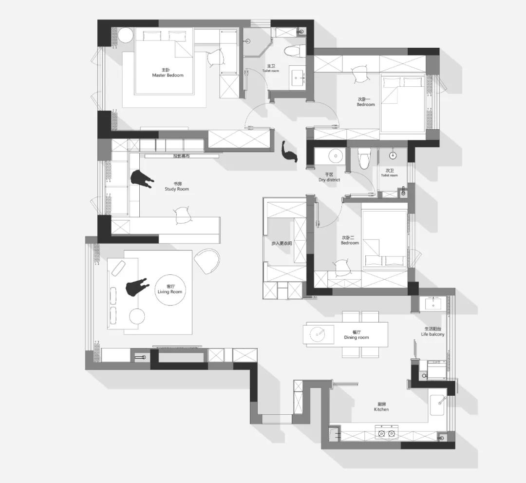 在有限空間范圍內(nèi)融入設(shè)計(jì)師對屋主生活的理解和需求的認(rèn)知,用精細(xì)化的手法,通過細(xì)節(jié)勾勒和氛圍營造滿足受眾的精神向往。