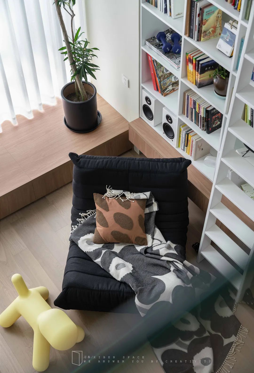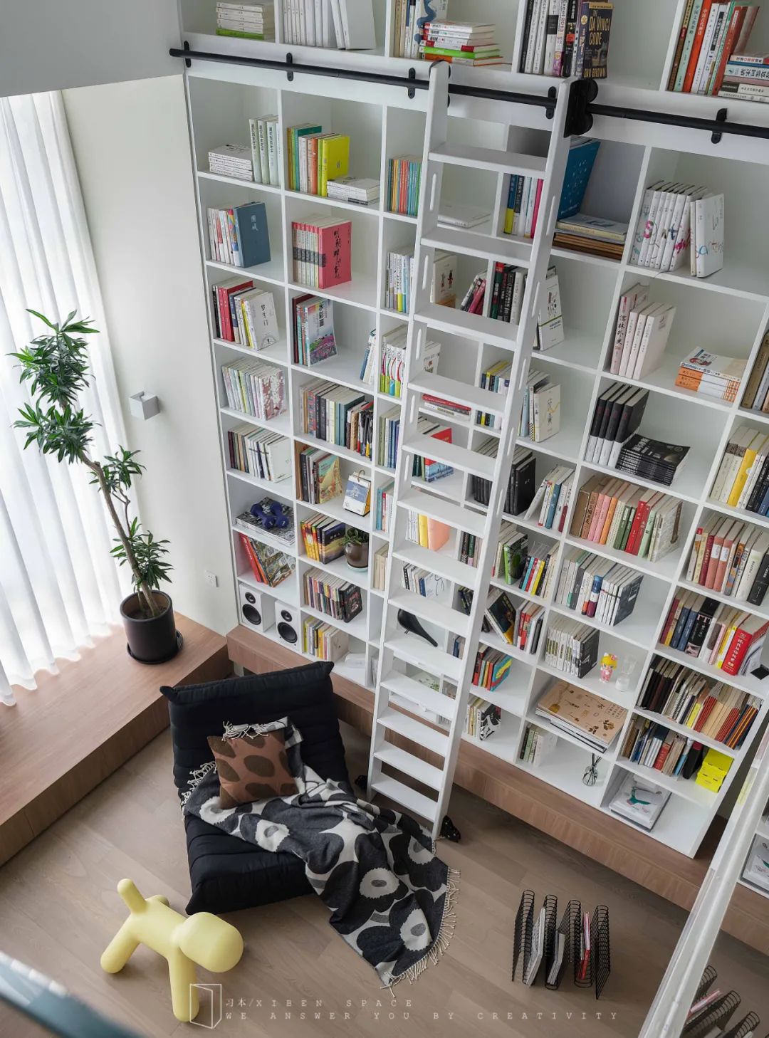 一整面高5米的全敞開式書柜