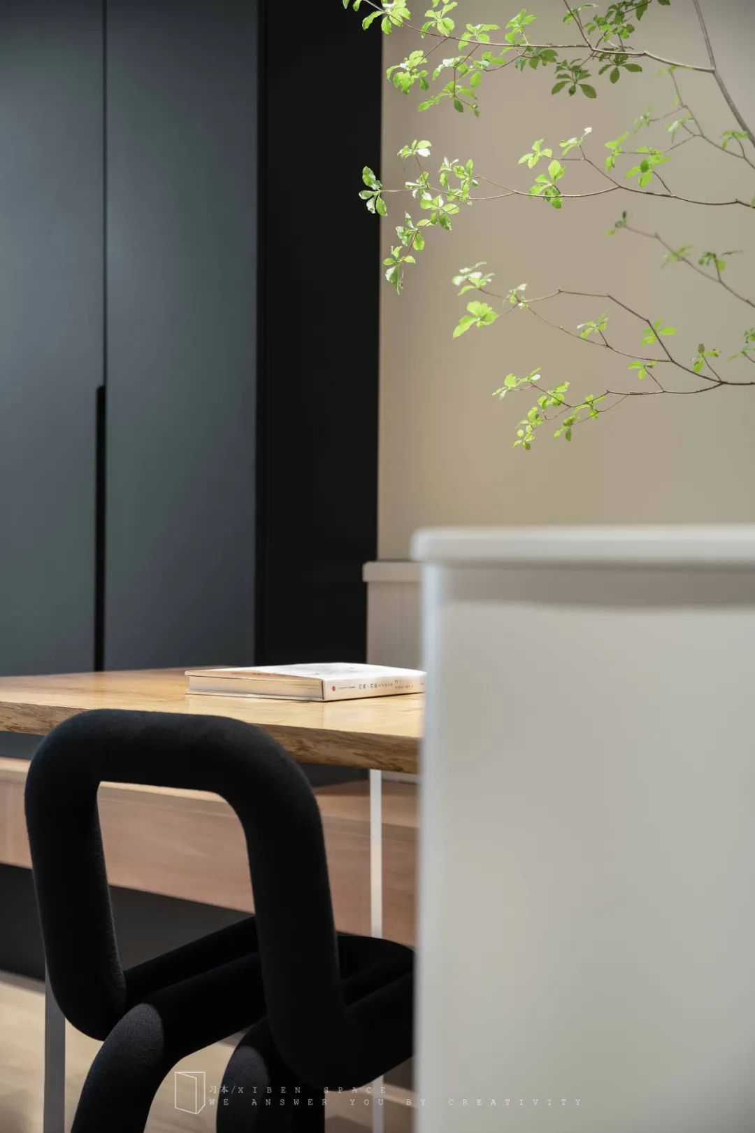 整體空間只有衛(wèi)生間隱私區(qū)域保留一部分墻體