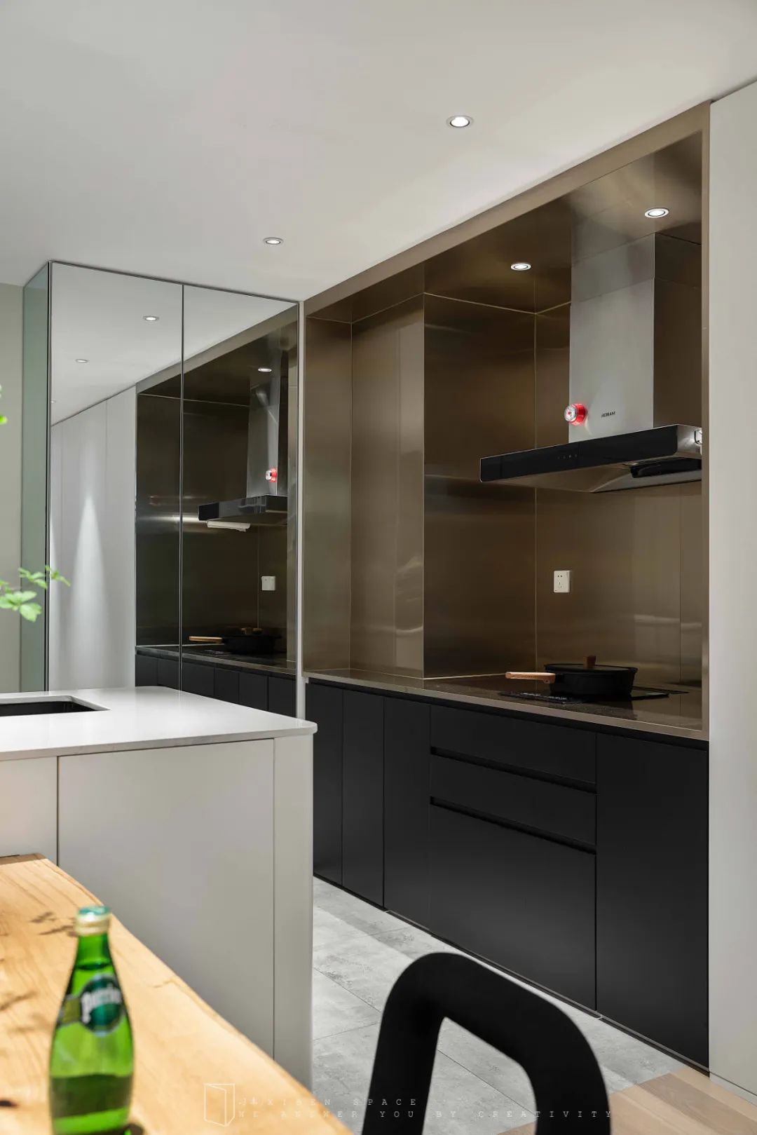 在廚房的一旁設(shè)計(jì)了一組島臺(tái)