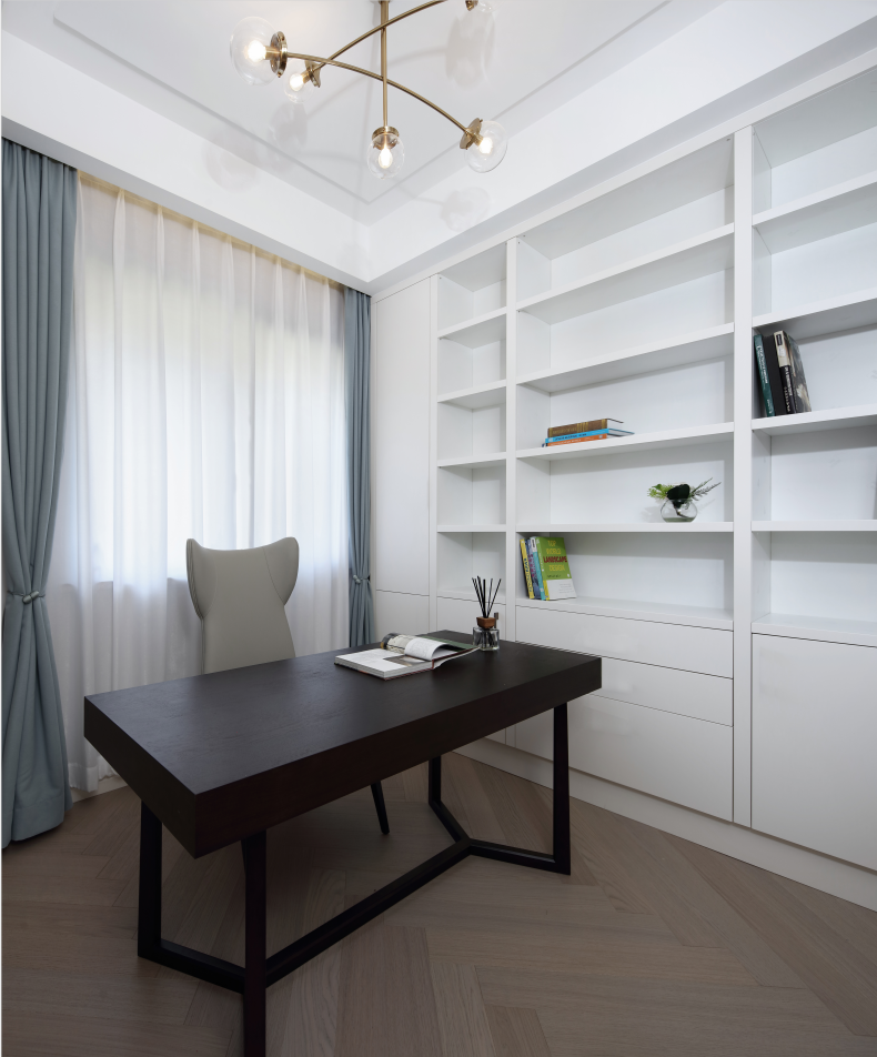 書房空間較小,考慮到收納直接做了一整面的收納柜,簡約又實用~
