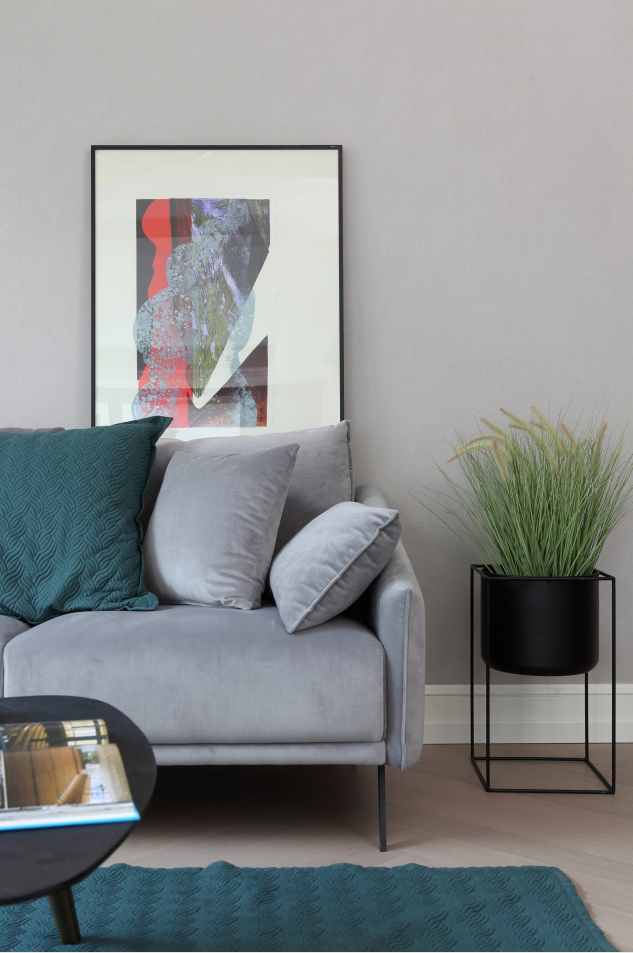 客廳的細節(jié)處也是簡簡單單的~一張壁畫,一個小小的落地燈滿足業(yè)主的基本需求。