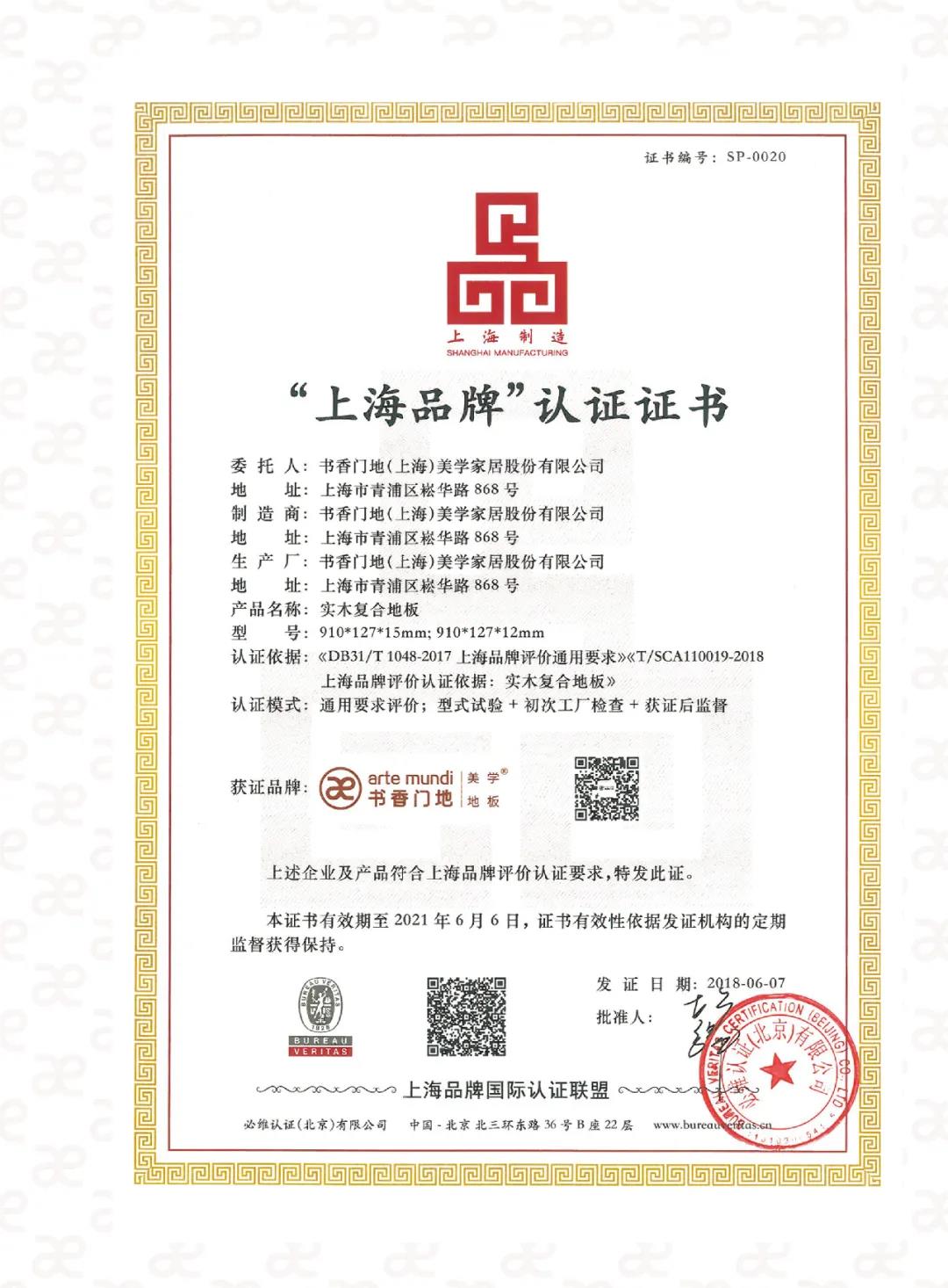 2018年書香門地成為首批獲得上海品牌認(rèn)證的單位之一,意在再塑“上海品牌”新“金字招牌”,致力于做高質(zhì)量產(chǎn)品,助消費(fèi)者樂享品質(zhì)生活。
