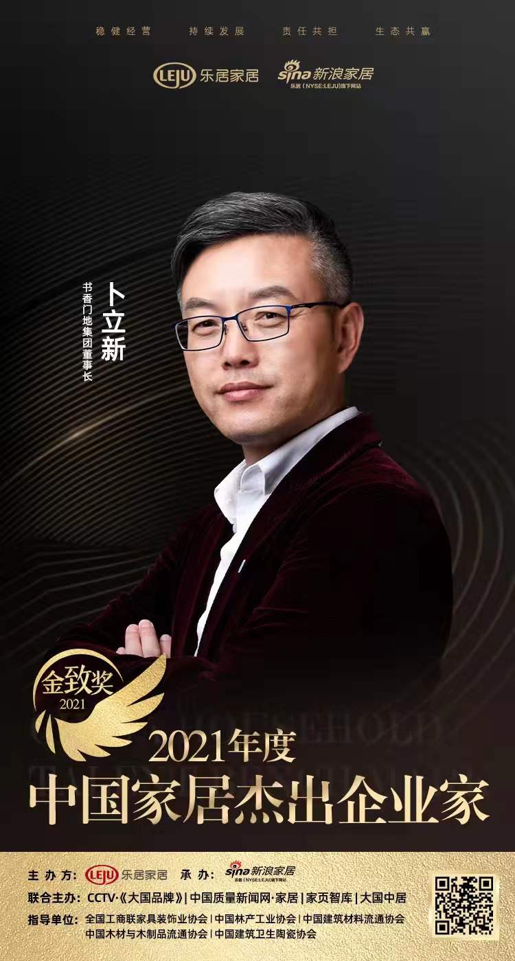 書香門地集團(tuán)董事長(zhǎng)卜立新,首創(chuàng)地板美學(xué)概念,是“書香門地”美學(xué)地板品牌創(chuàng)始人之一,為地板行業(yè)轉(zhuǎn)型升級(jí)開創(chuàng)了全新道路。在企業(yè)經(jīng)營(yíng)過程中,堅(jiān)持“儒釋道”文化精髓治企和“真善美”的品質(zhì)標(biāo)準(zhǔn),以美學(xué)理念引領(lǐng)創(chuàng)新研發(fā)與產(chǎn)品設(shè)計(jì),為中國家居住宅注入藝術(shù)之魂,榮獲「2021中國家居杰出企業(yè)家」,實(shí)至名歸!