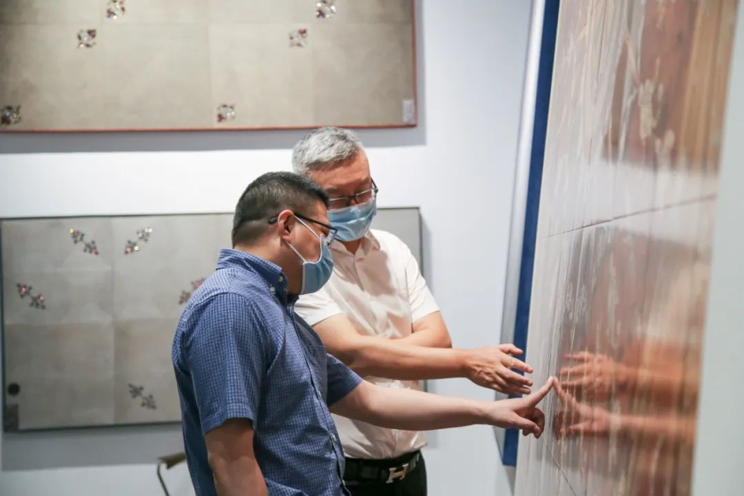 肖區(qū)長一行先后參觀了書香門地美學(xué)總部基地、書香門地美學(xué)展廳,了解書香門地企業(yè)情況,零距離接觸上千款如藝術(shù)畫作般的美學(xué)地板。領(lǐng)導(dǎo)一行不時(shí)觸摸地板質(zhì)感,就地板結(jié)構(gòu)、耐磨度、工藝制造等問題詢問,對(duì)書香門地創(chuàng)新設(shè)計(jì)和材料融合跨界工藝給予充分肯定和高度評(píng)價(jià)。