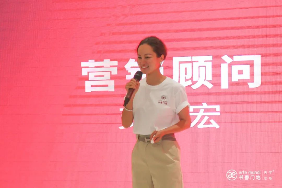 △書(shū)香門(mén)地集團(tuán)營(yíng)銷(xiāo)顧問(wèn)支宏就美學(xué)地板節(jié)活動(dòng)進(jìn)行宣導(dǎo)