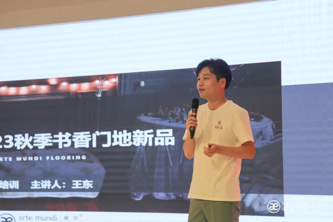 會(huì)議伊始,書(shū)香門(mén)地集團(tuán)營(yíng)銷(xiāo)顧問(wèn)支宏進(jìn)行美學(xué)地板節(jié)活動(dòng)宣導(dǎo),她強(qiáng)調(diào)美學(xué)地板節(jié)作為書(shū)香門(mén)地延續(xù)多年的年度IP營(yíng)銷(xiāo)活動(dòng),從產(chǎn)品、營(yíng)銷(xiāo)推廣等多角度、全方位,以最大力度打造年度書(shū)香盛宴。研發(fā)中心產(chǎn)品設(shè)計(jì)師王東對(duì)此次美學(xué)地板節(jié)推出的新品進(jìn)行詳細(xì)講解,以最強(qiáng)方式打入市場(chǎng),搶占市場(chǎng)高位。