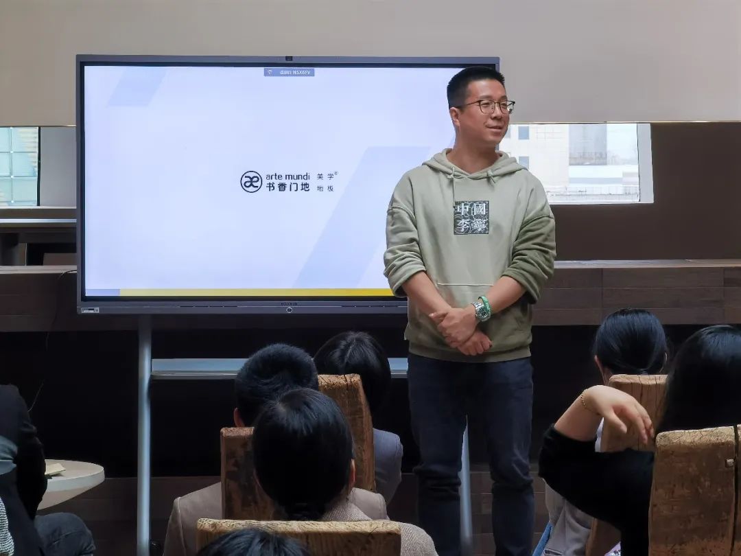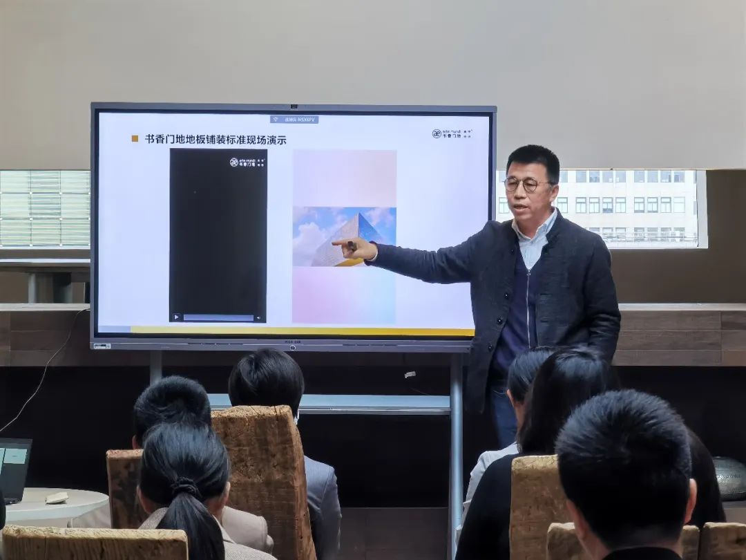 書香門地集團(tuán)市場(chǎng)部總經(jīng)理胡玉姣向在場(chǎng)設(shè)計(jì)師們介紹書香門地悠遠(yuǎn)的品牌發(fā)展歷程,娓娓講述書香門地美學(xué)設(shè)計(jì)觀念、產(chǎn)品研發(fā)故事、獨(dú)家匠心工藝、高端生產(chǎn)研發(fā)、質(zhì)量檢驗(yàn)工序與專業(yè)地板鋪裝方式,設(shè)計(jì)師們仔細(xì)聆聽書香美學(xué)文化,感受書香獨(dú)具質(zhì)感的美學(xué)產(chǎn)品。