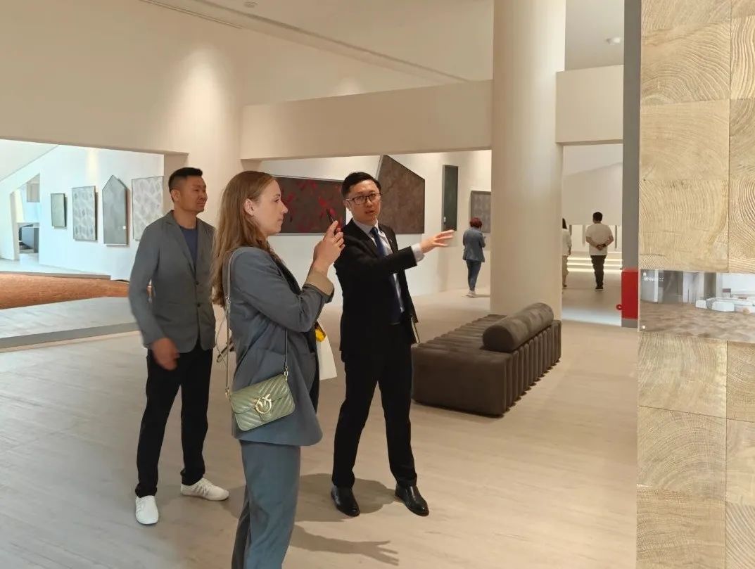 Craggs Lesley 一行參觀書香門地集團美學總部基地,詳細了解書香門地集團發(fā)展歷程及產品生產、制造、檢驗過程等相關情況,并充分體驗了融合文化、藝術、哲學的美學生活館,感受每一款美學地板的極致用心,在光影與建筑結構美的環(huán)境中體會自然與生命力。