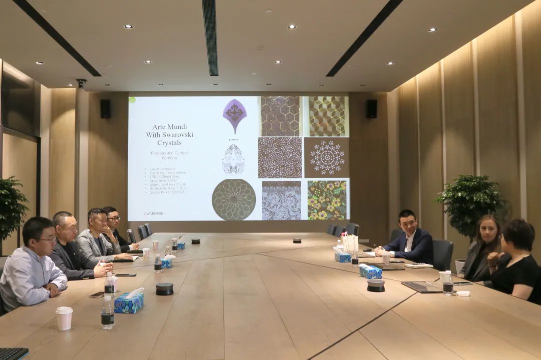 5月18日,施華洛世奇奧地利總部產品總監(jiān) Craggs Lesley、大中華區(qū)B2B品牌部經理胡玥玲、大中華區(qū)B2B大客戶經理許華寶走進書香門地集團交流。書香門地集團副董事長兼副總裁卜立江、產品研發(fā)中心總監(jiān)侯俊峰、產品研發(fā)中心副總監(jiān)彭來、終端運營部副總經理周偉威等接待,展開友好交流,共探更多元化、多具創(chuàng)意的水晶元素跨界研發(fā)。