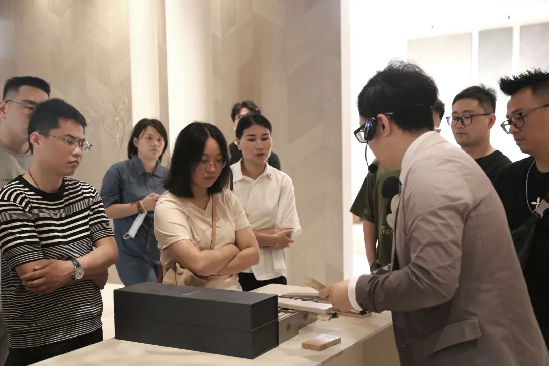 慈溪設計師一行仔細聆聽書香門地品牌發(fā)展歷程、涂裝涂飾知識、美學設計理念、產(chǎn)品研發(fā)故事、獨家匠心工藝、嚴苛質(zhì)檢工序等,深入領(lǐng)略書香門地將地板與美學、藝術(shù)、文化巧妙交融的魅力和風尚,沉浸于融聚東方氣韻與西式美學的藝術(shù)氛圍。