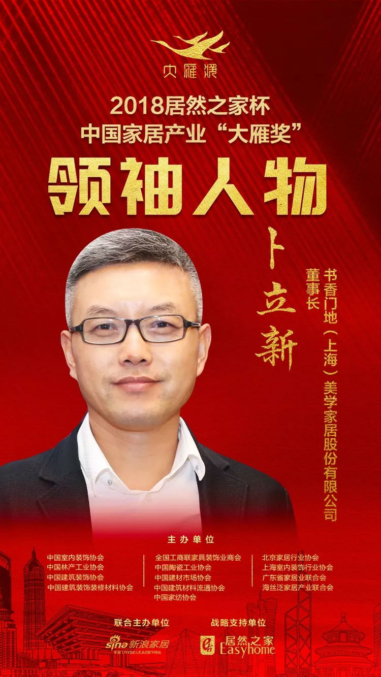 ▲書香門地董事長卜立新榮膺“大雁獎”2018年度中國家居產業領袖人物