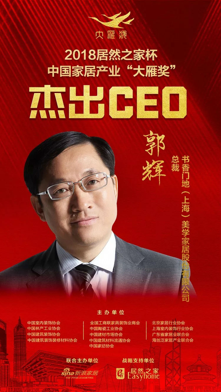 ▲書香門地CEO郭輝榮膺“大雁獎”2018年度中國家居產業杰出CEO